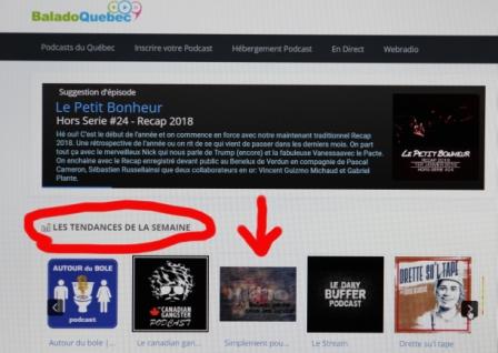 On ne compte plus les heures de labeur derrière le succès des Baladodiffussions et de l’émission radio Simplement Plein Air et la photo qui suit le démontre bien. Depuis quelques semaines les Baladodiffussions Simplement Plein Air se retrouve parmi les plus écoutés au Québec. Merci à vous nos auditeurs, chroniqueurs, stations radio et commanditaires.
